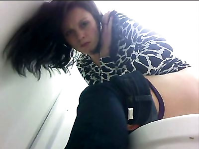 Asian woman pees in rest room