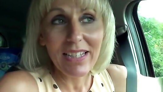 Exhibitionist grandma lets herself be brought to ejaculation right in front of a motel