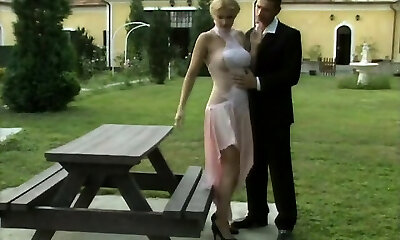 Gorgeous blonde cougar with sunglasses feels ultra-kinky for a young country girl